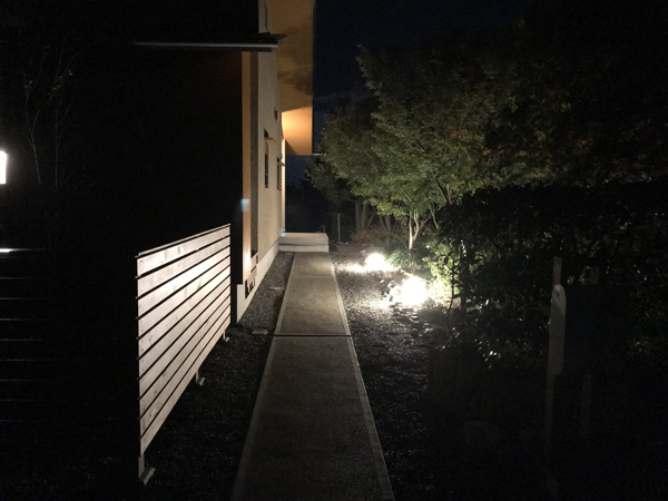 香川県観音寺市に建つ若夫婦の為の住居。両親の家が隣接し、アプローチと駐車場と庭を共有している。
