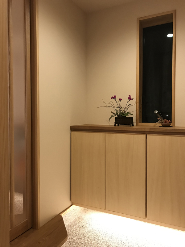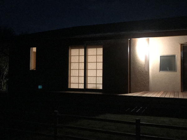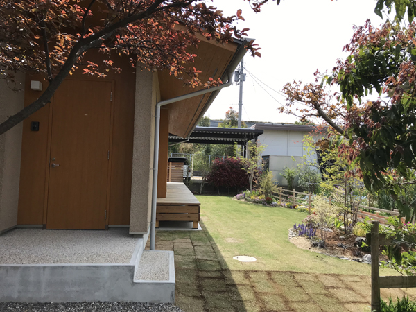 母屋の玄関入り口との関係に配慮し、コミュニケーションがとれる計画としている。